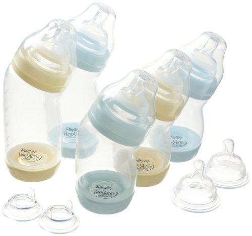 Playtex VentAire Advanced BPA Free Bottle System - A clinical study confirms that babies using new Playtex VentAire Advanced bottles had less gas, spit-up, colic and other discomforts than with other leading bottles. Here's why: Breakthrough Micro-Channel Vent Technology Unlike ordinary bottles that vent through the nipple, VentAire Advanced keeps air at the back of the bottle as baby drinks, so virtually NO AIR mixes with the milk and gets into baby's tummy. Reduc