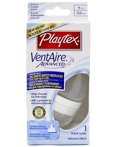 Playtex Baby VentAire ADVANCED Wide Bottle 9 OZ: White A clinical study confirms that babies using new Playtex VentAire Advanced bottles had less gas, spit-up, colic and other discomforts than with other leading bottles. Here's why: Breakthrough Micro-Channel Vent Technology. Unlike ordinary bottles that ...